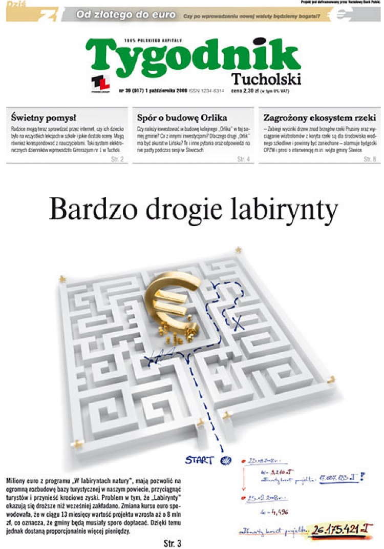 Projekty graficzne okładek `Tygodnika Tucholskiego` - lokalnej gazety ukazującej się w nakładzie ok 6000 egz.