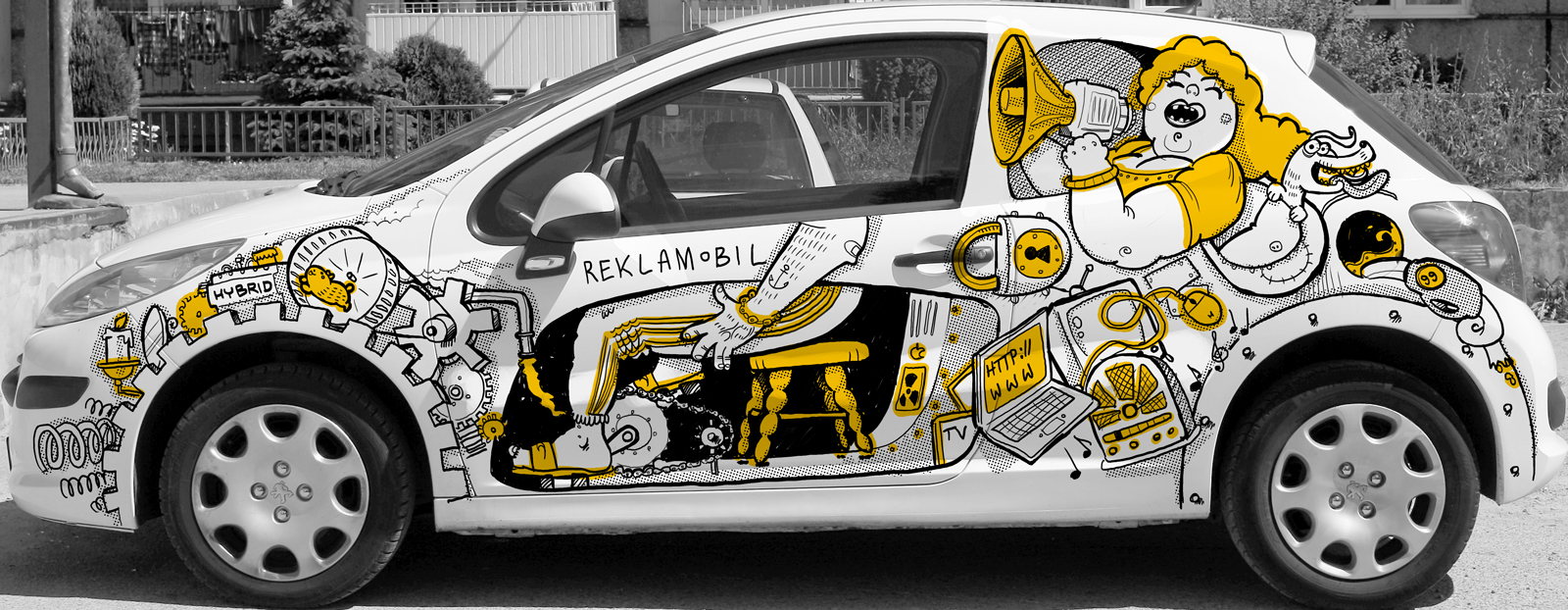 tagi: projekty graficzne, peugeot, grafika na samochód, rysunki, samochód komiks, komiksy, ilustracje